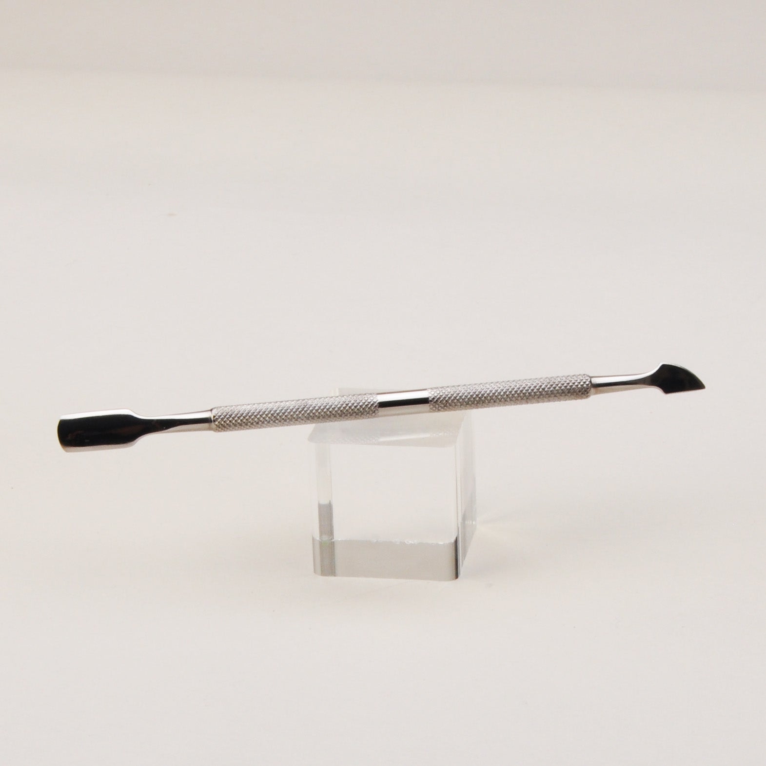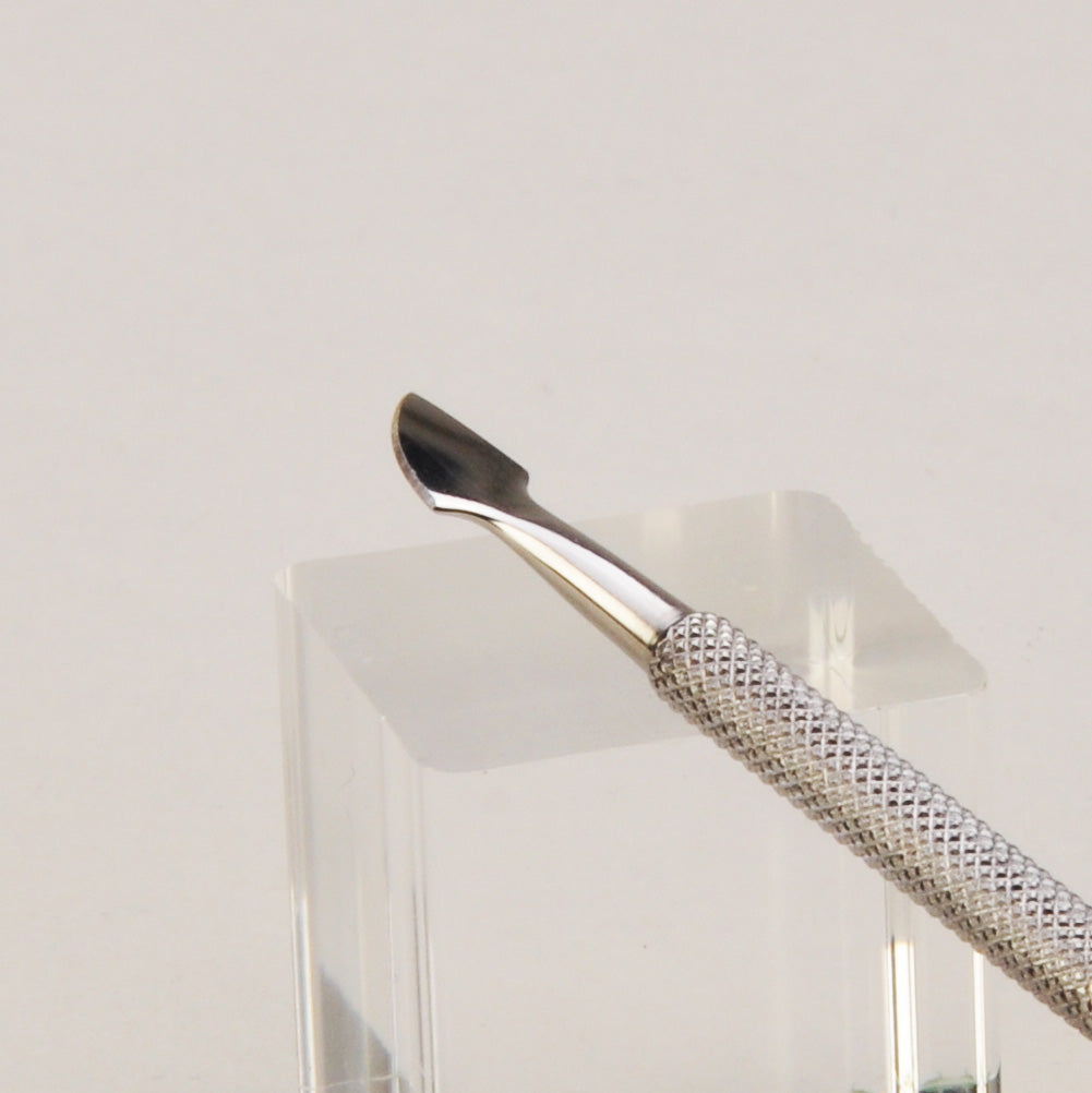 Vores professionelle neglebåndsskubber er det vigtigste værktøj i din "prep-rutine". Den er designet til skånsomt, men effektivt, at skubbe neglebåndet tilbage og fjerne det usynlige lag af døde hudceller på neglepladen, så din [Base Coat] kan hæfte optimalt.